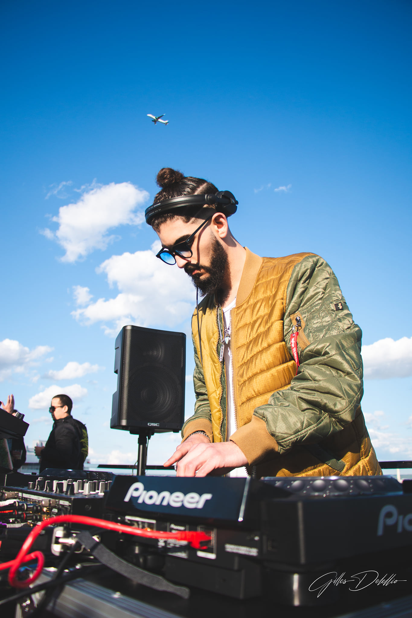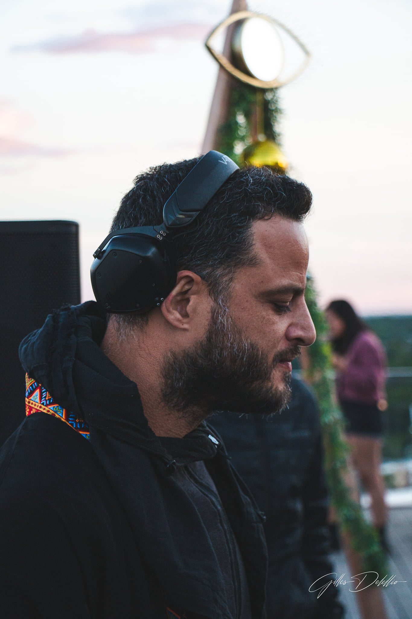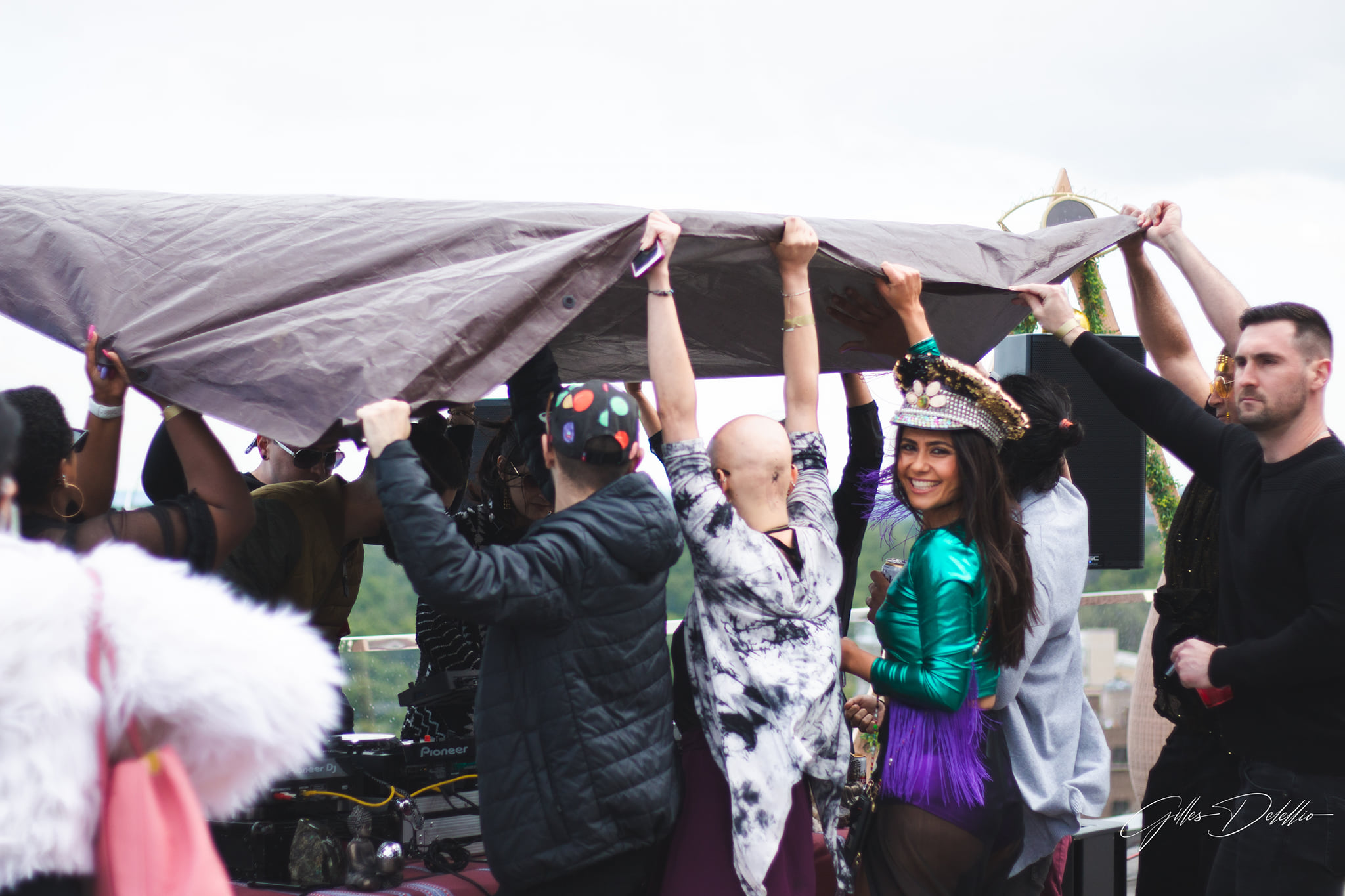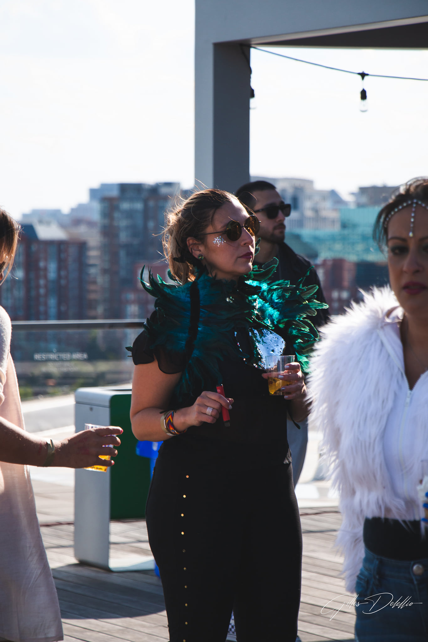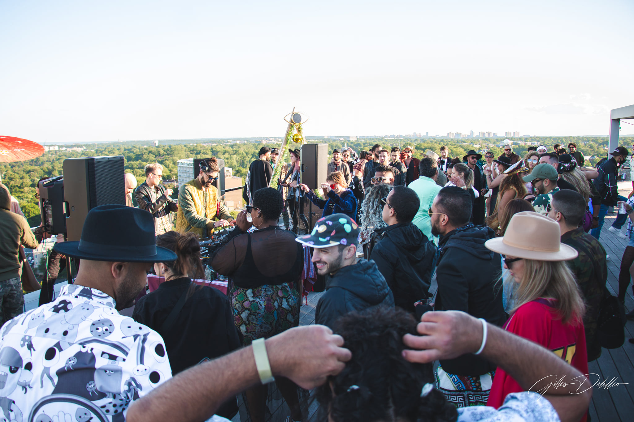 As we checked in and stepped on the rooftop, we saw that people were already moving to the tunes played by Nabū, a local artist from the D.C. area. Nabū is rapidly earning his spot as a staple in the Washington D.C. electronic community. He curates an uplifting, reminiscent, warm, and soulful journey for the crowd, and we were glad to see him on the line-up. We immediately noticed the unparalleled 360-degree views of the city and its surrounding areas. The weather was chilly but sunny. Through the evening, the weather stayed cool and became colder as the night progressed. Thankfully, we had planned for it and dressed warmly.